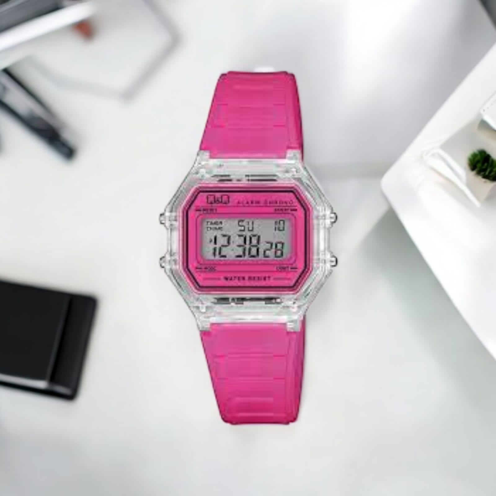 Visualización: Funciones clásicas de reloj: hora, minutos, segundos, pm,9 mes, fecha, día; Cronometro, Dual Time Luz led y Alarma. - Tipo de Movimiento: Bateria - Tamaño de la caja: 33 mm - Cristal: Resina - Material de la correa: Resina. - Material de la Caja/Bisel: Resina. - Resistente al agua: 3 ATM (30 mts)